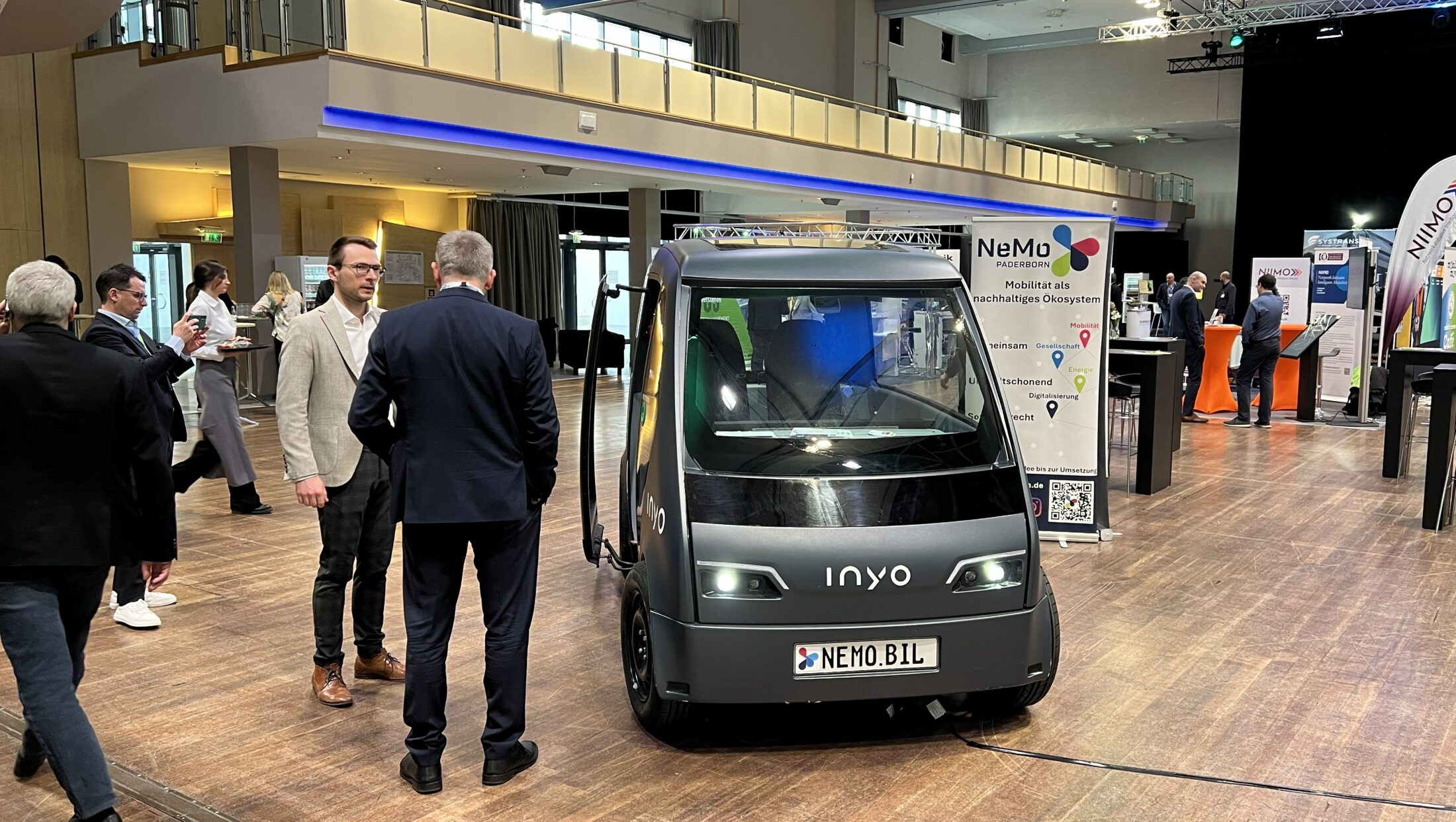 Für die Initiative Neue Mobilität Paderborn (NeMo) nahmen Geschäftsführer Jonathan Behm und Projektingenieur Sören Rahmen an der Fachmesse mobility move 2026 in Berlin teil. Das Projekt NeMo.bil vertraten die Projektbeteiligten und Prof. Johannes Weyer von der TU Dortmund. Die Messe gilt als größter Treffpunkt für Verkehrsunternehmen, Industrie, Dienstleister, Aufgabenträger, Politik und Verbände. Auf der mobility